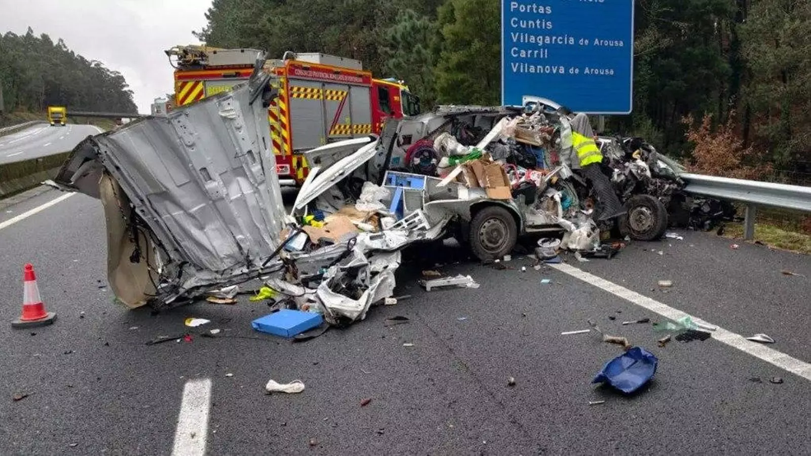 Una aparatoso colisión entre una furgoneta y un camión dejó a una persona herida en la AP-9, a su paso por Caldas de Reis, según informó el 112 Galicia. El accidente se produjo en el kilómetro 108, cerca de Bemil, poco antes de las 16.00 horas, y generó retenciones de tráfico durante más de una hora.