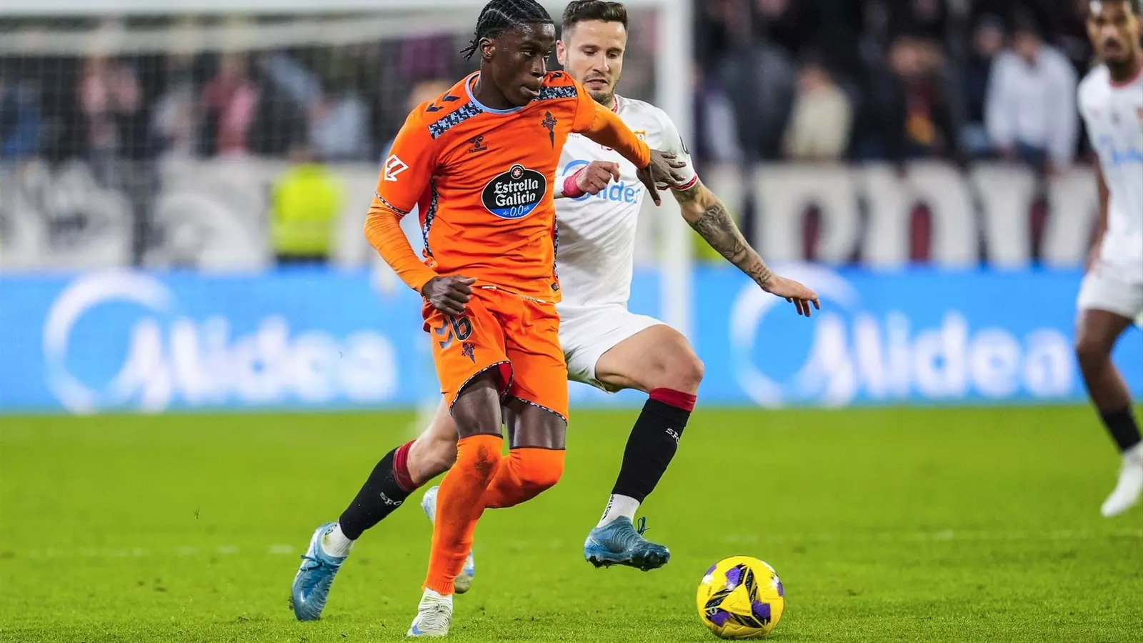 El Celta dominó la primera parte en el Sánchez-Pizjuán frente a un Sevilla que no supo cómo superar las líneas de presión celestes y que, además, dejó muy suelto a Iago Aspas. El moañés aprovechó el descuido del rival para filtrar balones a Pablo Durán, aunque le faltó precisión para poner en ventaja al delantero de Tomiño. En campo céltico, a Javi Rodríguez le tocó vigilar al jugador más peligroso del Sevilla, Dodi Lukébakio, y el atacante local sólo se le escapó una vez en la primera mitad y sin consecuencias.