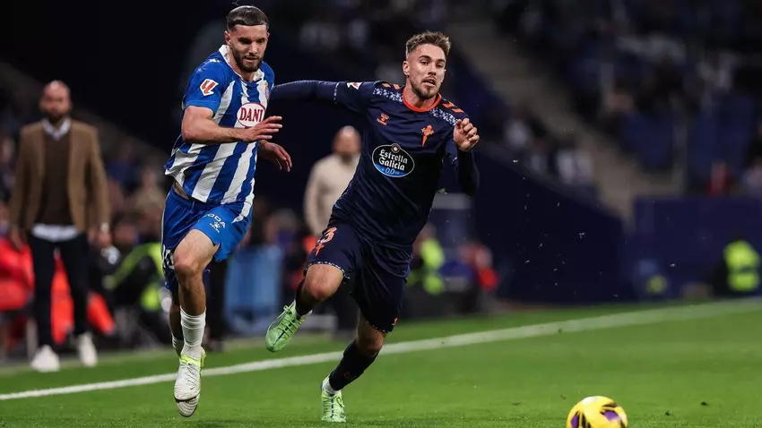 En lo carnal, eso fue todo. Incluso el Espanyol logró arañar más con una ocasión desperdiciada por Jofre. Mientras, el conjunto barcelonés encontró la manera de tapar a Moriba y Mingueza y, a la media hora, el Celta se decidió a variar de nuevo, dejando a Mingueza caer a la banda. Un pase largo suyo buscando el desmarque de Douvikas, demasiado ajeno al juego, fue el preludio de un saque de esquina, el único a favor de los célticos en la primera parte. Menos mal. Porque, de nuevo, el bloque celeste tiró de escuadra y cartabón para dibujar una ejecución al pie que no salió como se había imaginado. De hecho, propició una carrera si freno de Cardona, que se plantó al borde del área celeste y batió de un derechazo a Guaita. El castillo de naipes táctico, más que valorable, se fue al traste con una carrera de área a área por el centro y un golpeo lejano. Más simple, más rústico. Menos cosmopolita.