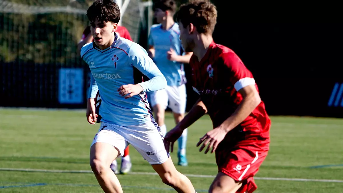 El Celta se impuso ayer al Bansander en A Madroa y sigue firme en la segunda plaza del grupo 1 de División de Honor Juvenil, solo por detrás del Deportivo. Los de Alberto Suárez lograron el triunfo gracias a los goles de Hugo Pérez y Pablo Aparicio, aunque les costó abrir la lata durante gran parte del encuentro.