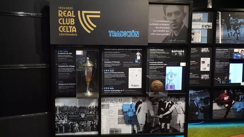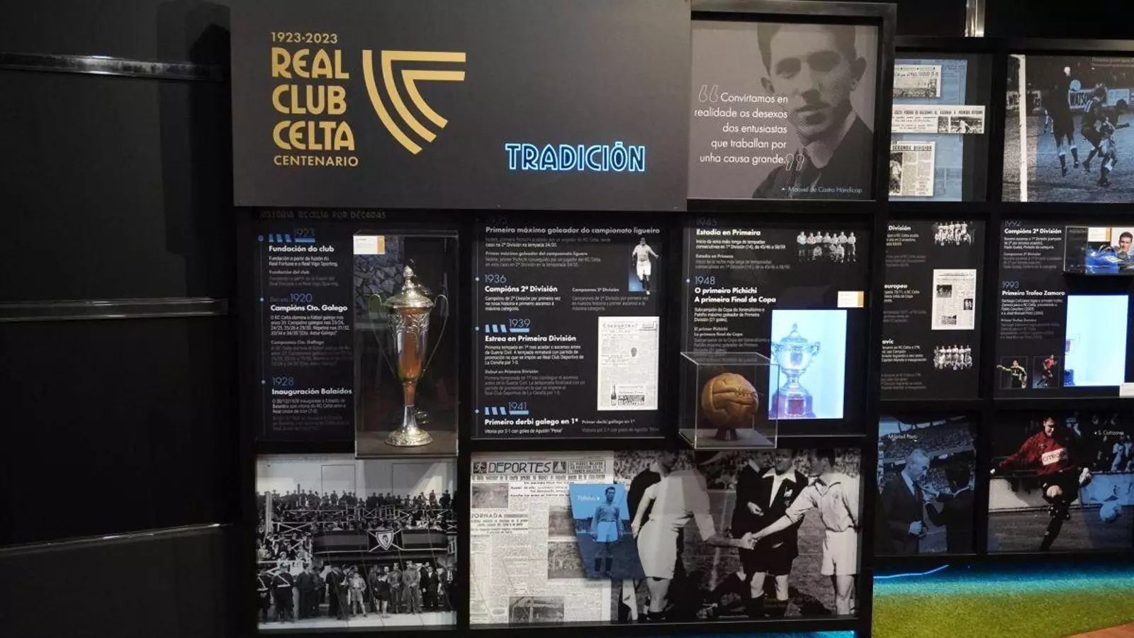 La visita comienza en la exposición dedicada al centenario del Celta, situada en el Museo del club.