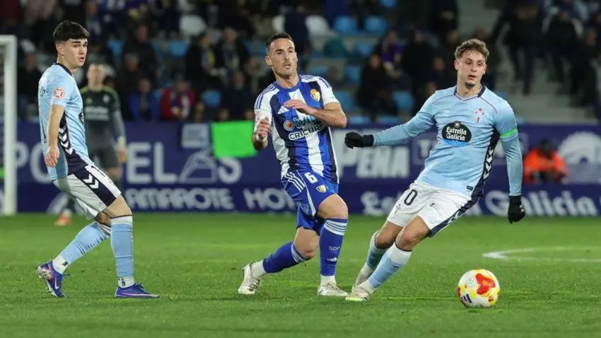 Comenzó el encuentro con una formación local que quería el balón y apretaba en busca de la portería contraria. Defendía con orden el Celta Fortuna, aunque no apretaba la salida de balón de los locales, que no se lo pensaban demasiado y en apenas dos toques se plantaba una y otra vez en el área contraria. Llegaba así la primera ocasión clara de los bercianos en el minuto 7 en un error de De la Iglesia en la entrega que acaba con balón para Joaquín Cortés, que centra al área donde esperaba Borja Valle con la pierna cargada, pero conseguía adelantarse Capdevila para desviar el balón. Y apenas un minuto después, era Undabarrena el que a punto estaba de adelantar a los locales en un remate raso que se le iba fuera por poco.