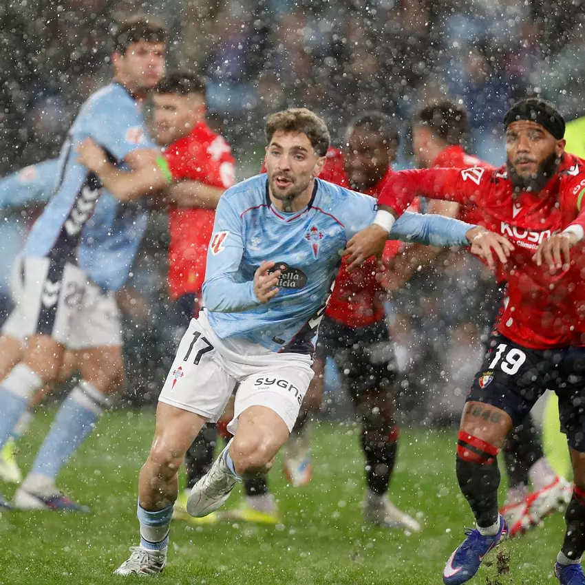 El Celta sufrió una derrota ante Osasuna (1-2) en Balaídos en un partido marcado por la lluvia constante y el protagonismo del juego aéreo. Pese al mal resultado, el equipo celeste contó con el apoyo de casi 19.000 aficionados que no dejaron de animar desde la grada.