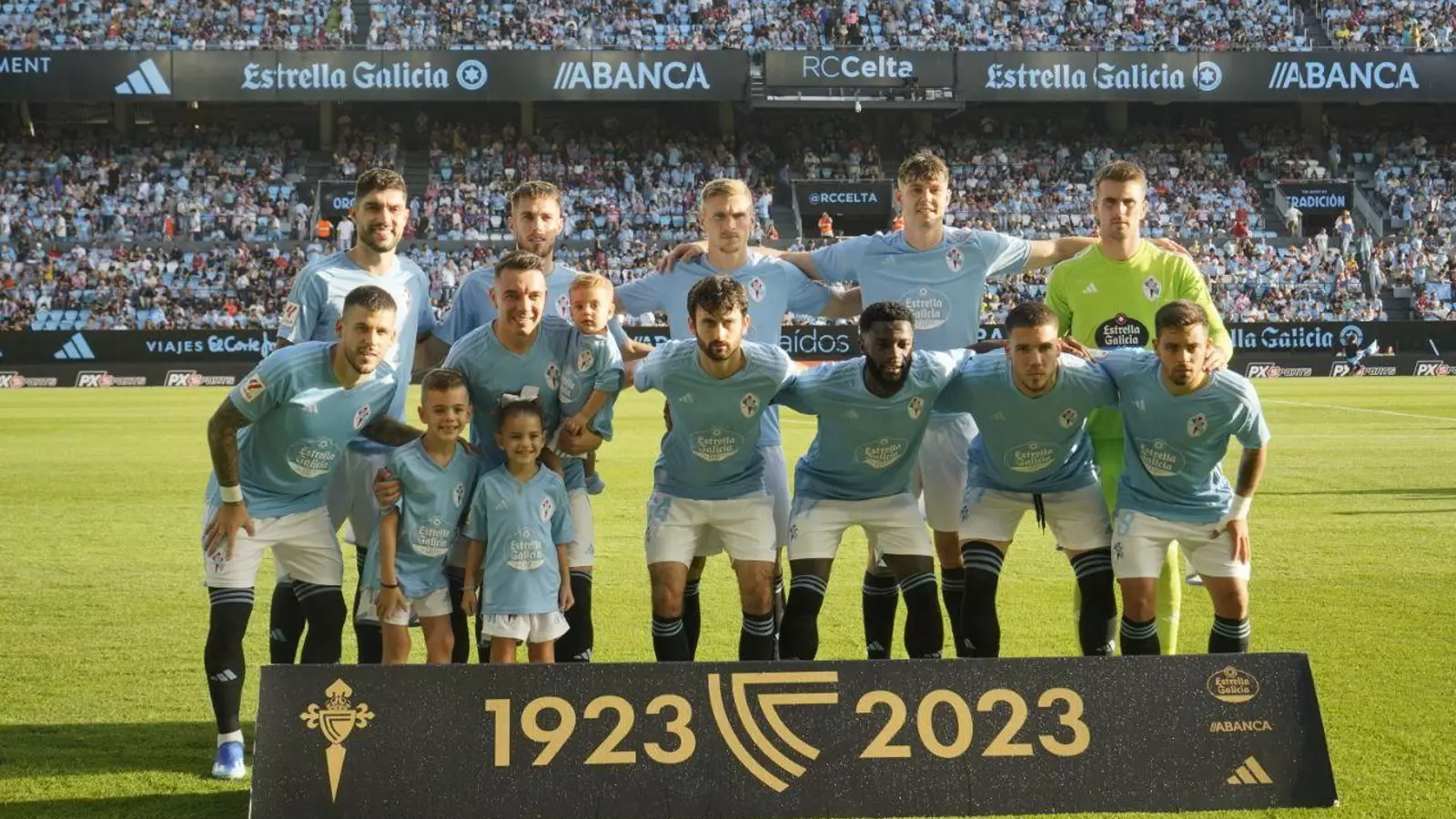 Aspas, Miguel y Sotelo, al fondo, al final del partido.