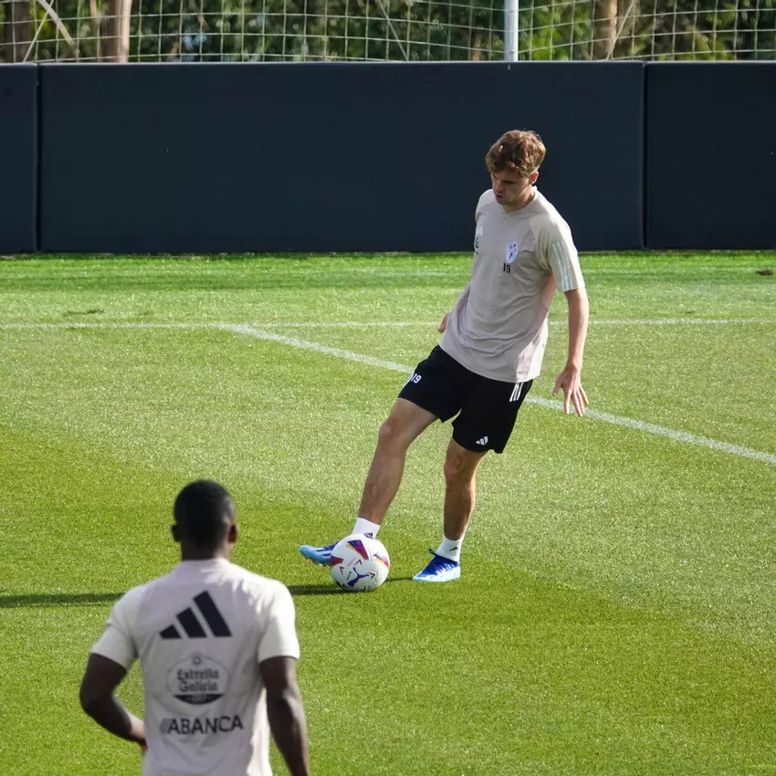 Los jugadores se ejercitan en la ciudad deportiva de Afouteza para preparar el encuentro ante el Alavés en el estadio de Balaídos.