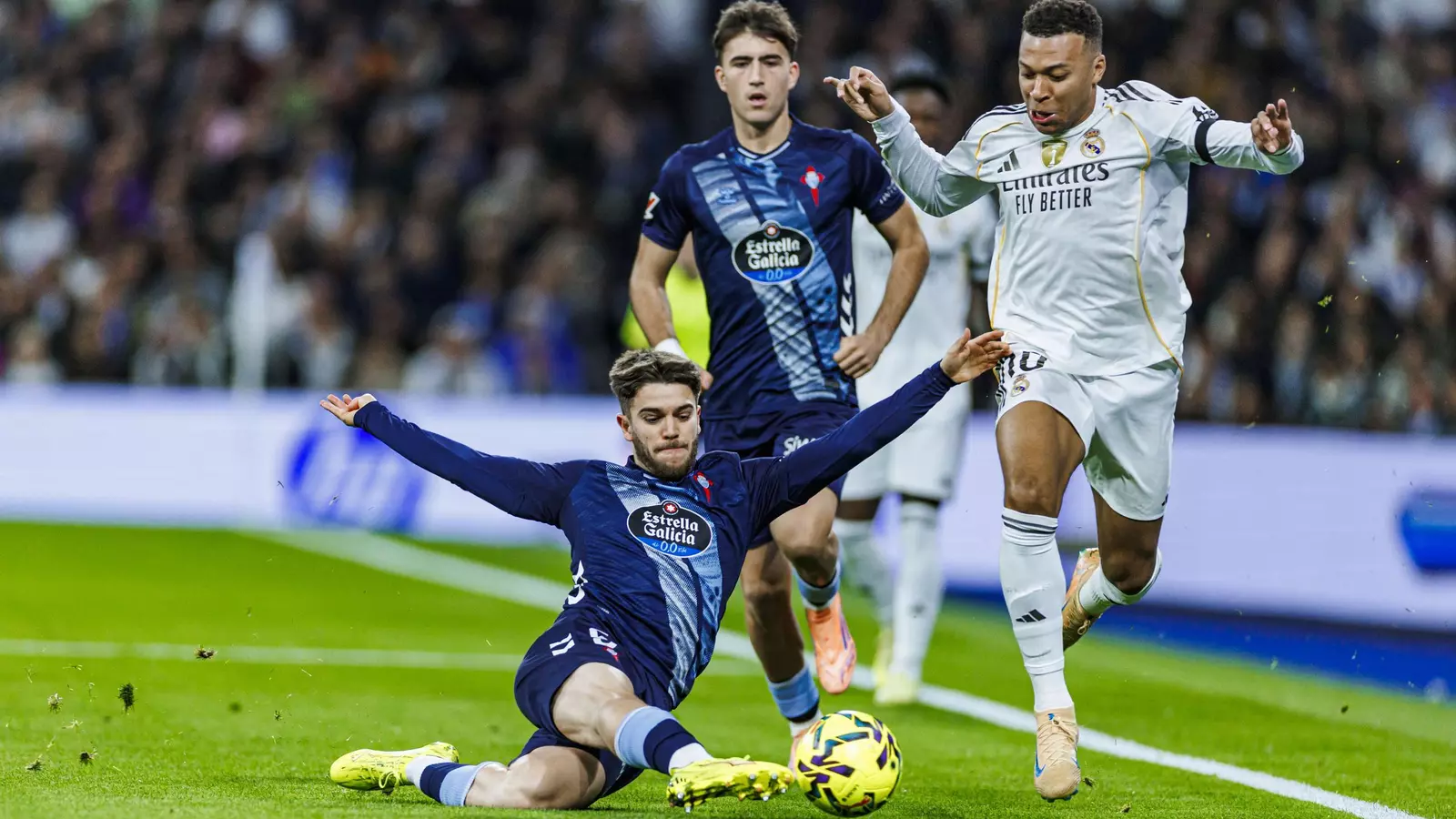 La derrota del pasado lunes ante el Getafe dejó en herencia, además del habitual estruendo que rodea a todo lo que hace el conjunto blanco, tres sancionados para Balaídos: Dean Huijsen, Álvaro Carreras y Franco Mastantuono. El central, el lateral izquierdo y el atacante se unen entre las ausencias a un parte médico muy poblado: Rodrygo Goes -tras confirmarse ayer una rotura del ligamento cruzado anterior de la rodilla derecha-, Dani Ceballos, Éder Militao, Jude Bellingham y nada menos que Kylian Mbappé. Una larga nómina de la que confían escapar, a pesar de sus respectivas molestias, David Alaba, Raúl Asencio y Eduardo Camavinga. De todos los nombrados, seis participaron en el encuentro de la primera vuelta ante el Celta, brillantemente ganado por los vigueses en el Bernabéu (0-2): Militao -que precisamente se lesionó en ese duelo-, Asencio, Carreras, Bellingham y Mbappé desde el once y Rodrygo desde el banquillo.