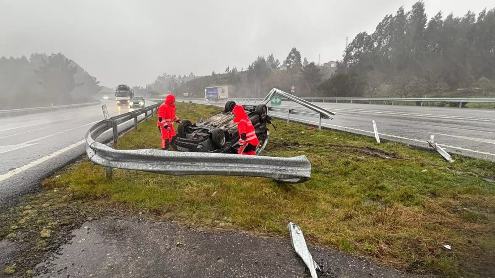 El coche invadió la mediana en un tramo conocido por los accidentes cuando llueve intensamente