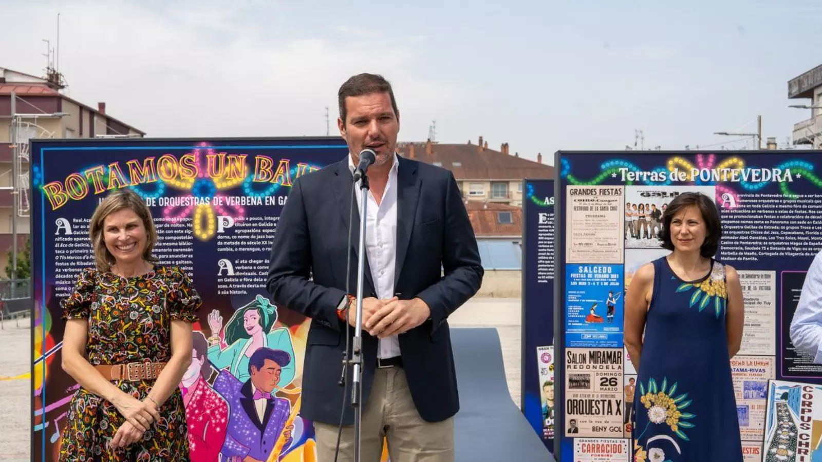 Desde la influencia de la emigración gallega en las bandas de música populares hasta los grandes escenarios actuales, pasando por las influencias de las orquestas en bandas contemporáneas, esta muestra de calle se hace eco de una historia común de la música en Galicia. "A primeira itinerancia que se fai dende a Cidade da Cultural é aquí, en Ponteareas”, señaló el conselleiro, invitando a visitar la exposición, en la Plaza de la Música, hasta el próximo 30 de junio. Y quienes la visiten, conocerán “as transformacións históricas e culturais das orquestras populares galegas ao longo do tempo”, explicó López Campos, destacando “o gran impacto económico, social e cultural destas agrupacións, que mobilizan, cada ano, a milleiros de persoas, así como as pegadas que deixan na música galega actual”.Este proyecto, parte de una exposición en la Biblioteca de Galicia en 2023, y hace un repaso a un tema con honda huella en la sociedad gallega, pero poco analizado académicamente. Un homenaje visual y documental que reivindica la verbena como parte esencial de la identidad gallega contemporánea, un viaje emocional y sonoro por estas festas como parte esencial da nosa idiosincrasia, con pasado, presente e moito futuro”.