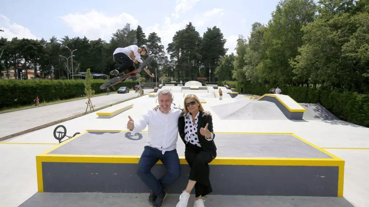 Luis Piña y Carmela Silva visitando ayer el nuevo skate park y pump track.