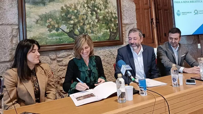 El Concello abre el primer concurso de ideas en la historia del municipio, promovido por el Colexio Oficial de Arquitectos de Galicia, COAG, para elegir el proyecto de la nueva Biblioteca de Ponteareas. Para ello, ayer firmaban un convenio de colaboración entre ambas entidades, la alcaldesa, Nava Castro, el decano del COAG, Luciano González, junto al presidente de la Delegación de Vigo, Manuel Martínez y la concejala de Urbanismo, Silvia Fernández Táboas.
