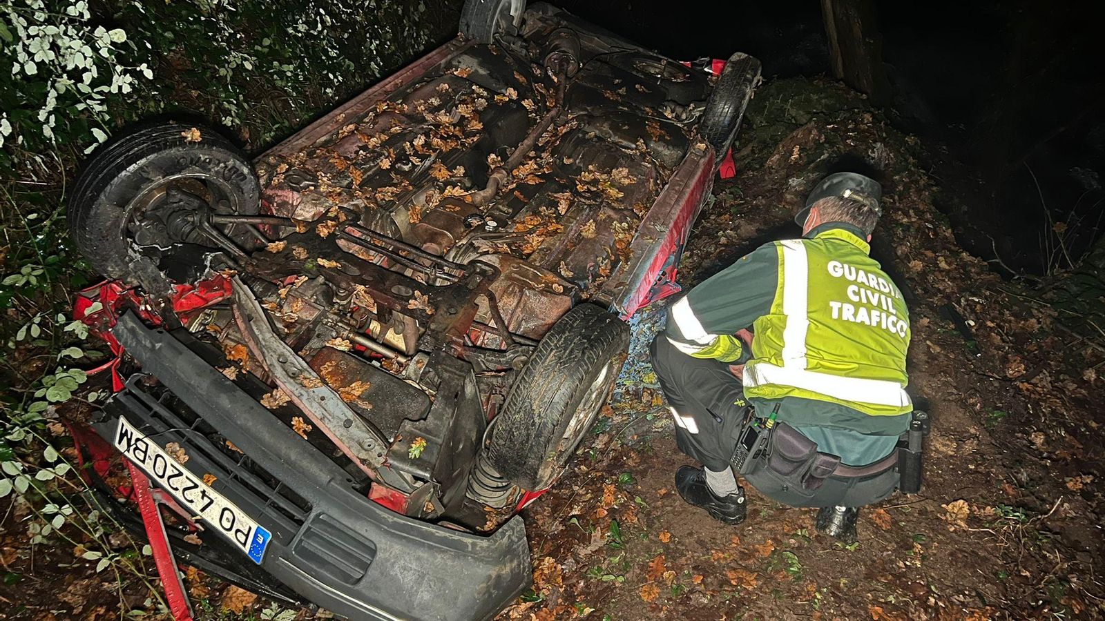 La Guardia Civil investiga las causas de un accidente de tráfico en San Salvador de Cristiñade, en Ponteareas. Un vecino encontró un vehículo en un camino con una persona fallecida en su interior. El vehículo se precipitó desde la carretera unos 25 metros y acabó en una zona frondosa