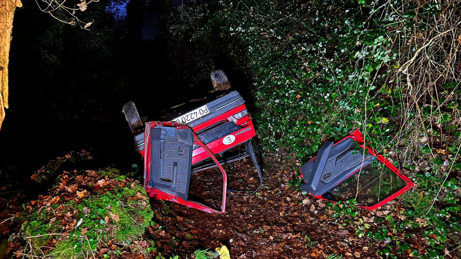 Fallece una persona tras precipitarse 25 metros con el coche en Ponteareas