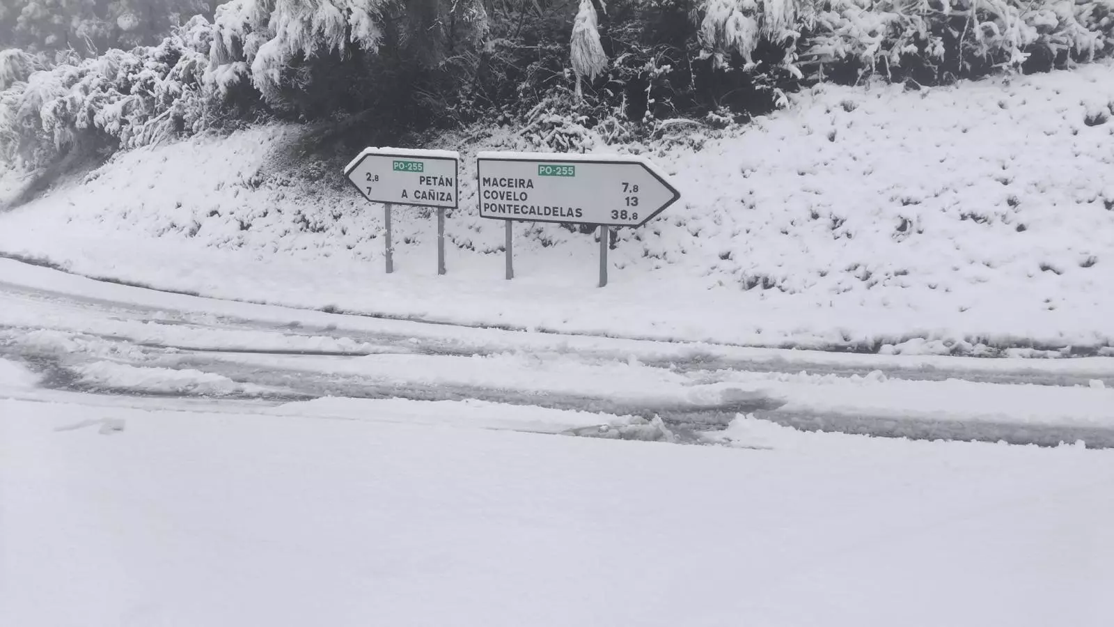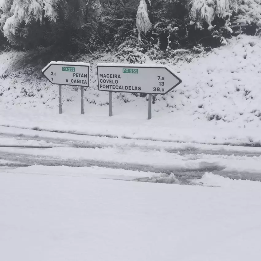 Galería | La nieve da la bienvenida al invierno en A Cañiza