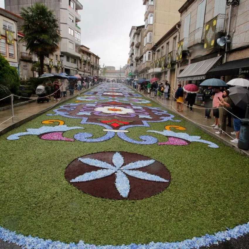GALERÍA | Los pétalos sustituyen a las gotas de lluvia en el Corpus de Ponteareas