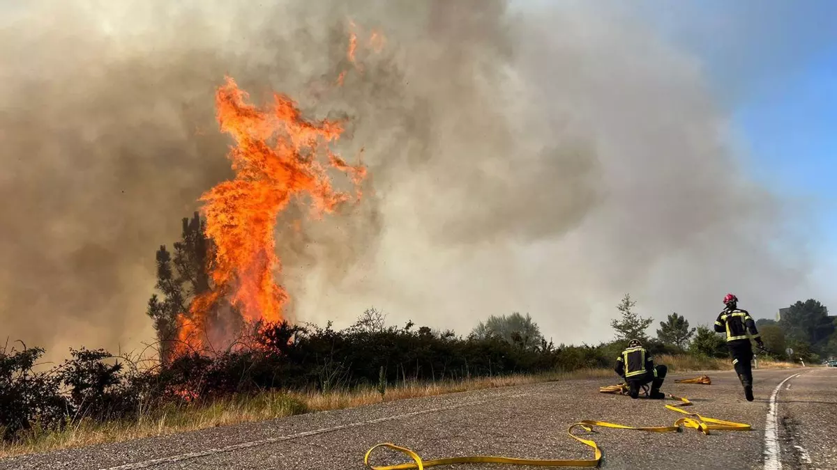 La A-52, cortada al tráfico por los incendios en A Cañiza