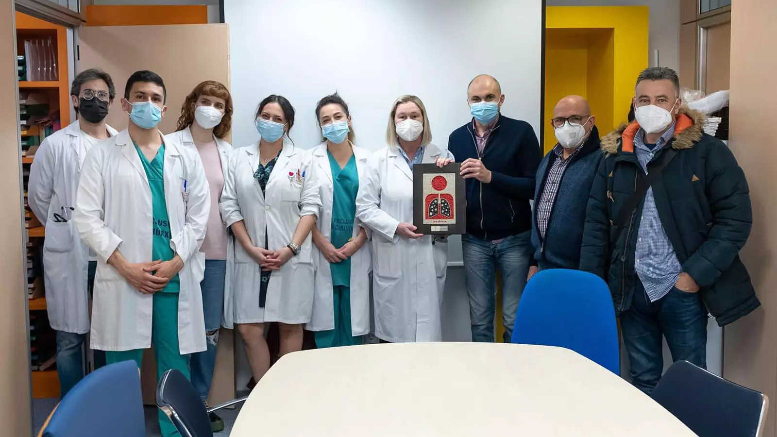 La Asociación de Afectados por Silicosis de Porriño, entregó una placa al equipo médico liderado por la doctora, Mercedes de la Torre, del Hospital Universitario de A Coruña