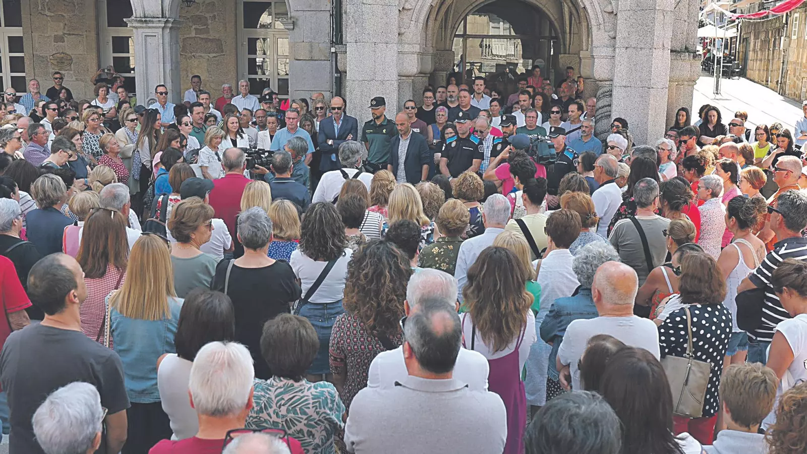 Agentes de la Policía Local con el oficial jefe, Daniel Martínez, o el capitán del puesto de la Guardia Civil destacado en O Porriño. Durante la concentración, el alcalde, Alejandro Lorenzo, agradecía ayer la “solidaridad y el apoyo” de los vecinos tras conocer lo ocurrido. “É moi duro, pero nestes momentos, hai que estar ao lado da familia golpeada por esta traxedia”. Lorenzo transmitió a los padres del pequeño, sus condolencias y el total respaldo del Concello y el suyo personal junto al de todo el pueblo de Porriño.