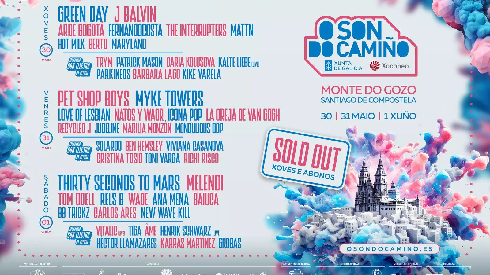 El esperado festival O Son do Camiño 2024, ubicado en Santiago de Compostela, marca el punto culminante del calendario musical gallego y se erige como uno de los eventos más destacados en toda España. Este año se llevará a cabo los días 31 de mayo, 30 de mayo y 1 de junio. El cartel cuenta con una impresionante lista de más de 40 artistas internacionales, entre los que destacan Green Day, J Balvin, Thirty Seconds To Mars, Myke Towers, Melendi, Pet Shop Boys, Rels B, Ana Mena o La Oreja de Van Gogh.