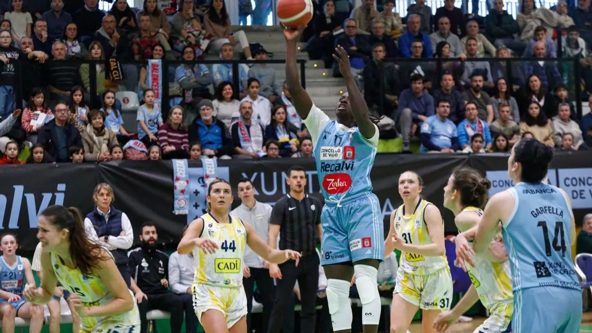 El equipo vigués empezó a sentenciar el choque en el tercer cuarto, en el que Trahan Davis y Samson suplieron a la perfección una nueva ausencia larga de Musa. Con ellas funcionaba el ataque de un equipo que aumentó su ventaja hasta los 17 tantos (60-43, min.30).