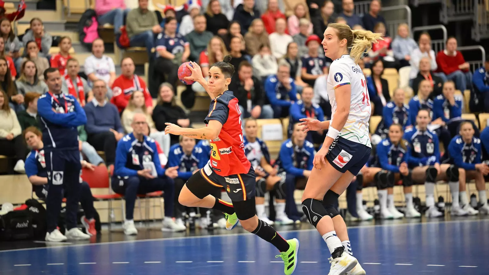 España comenzó con equilibrio en el marcador gracias a las intervenciones de Nicole Wiggins y los goles de Alicia Fernández, Ona Vegué y Paula Arcos. Sin embargo, la defensa noruega y la eficacia de Eli Marie Raasok entre palos frenaron al conjunto español, que llegó a encadenar más de diez minutos sin anotar, una situación que permitió a Noruega poner un 23-6 al descanso. Mañana (14:00), segundo partido ante la Serbia de José Ignacio Prades.