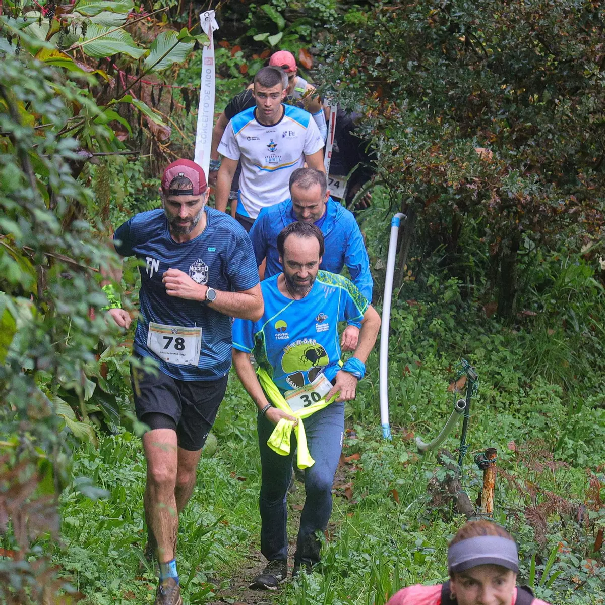 Aunque el tiempo era lo de menos para muchos de los participantes, los más competitivos tomaron rápidamente la delantera para cubrir un trazado blando y resbaladizo por las lluvias caídas en las últimas semanas. En esas condiciones, el más rápido fue Álvaro Soto, del club Delikia, que paró el crono en 1h27:23. Muy cerca del ganador, a poco más de 7 segundos, cruzó la línea de meta Daniel Domínguez (AC Castrelos Trail Club), y el podio masculino lo completó Adrián Sousa (GMTA Chuvoners), que entró a 21 segundos del vencedor.