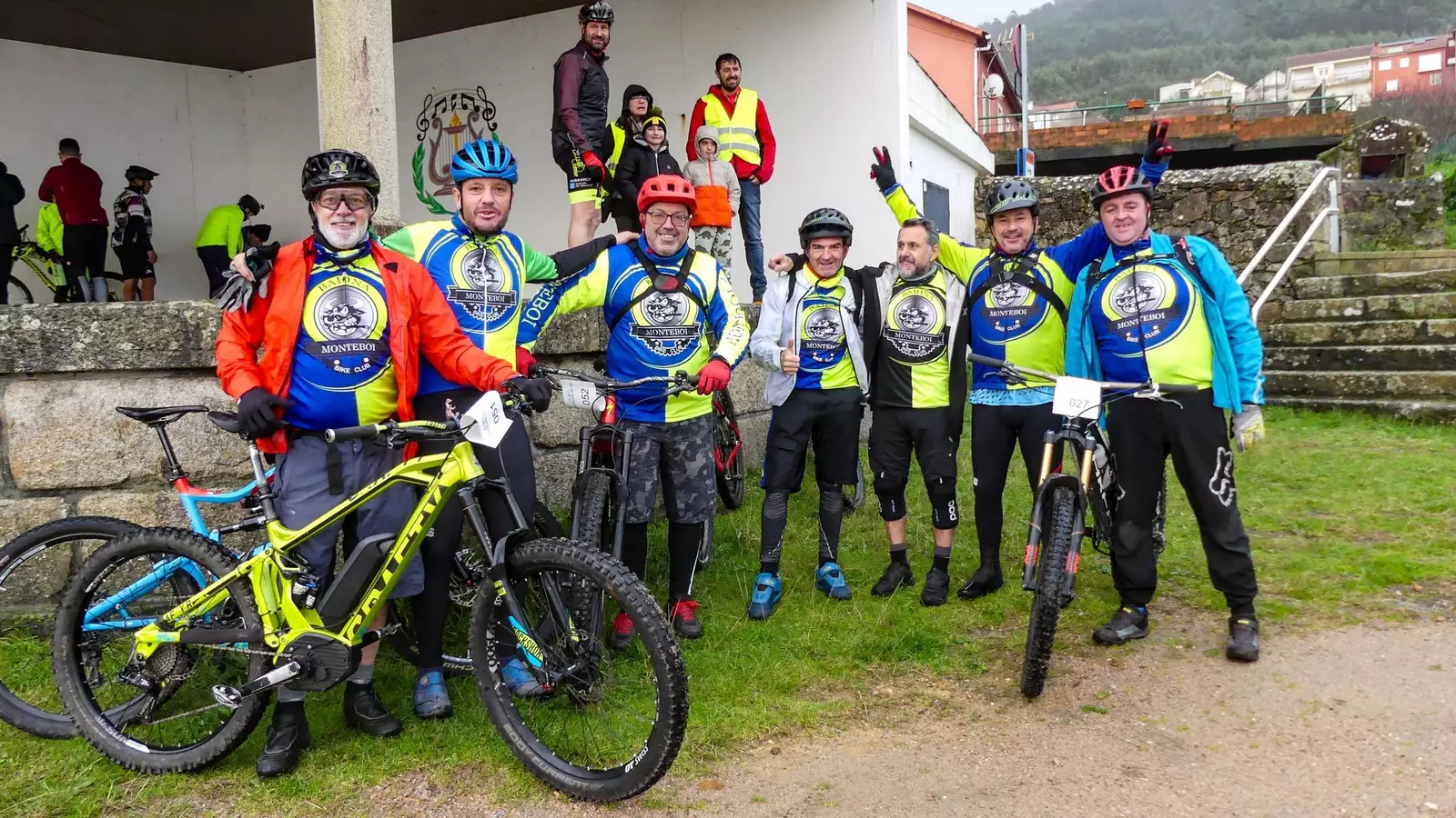 Ó redor de 120 ciclistas participaron onte na marcha BTT Chourizada de Oia que tivo nenos e adultos polo monte do concello miñoto nunha matinal con vento e algo de choiva