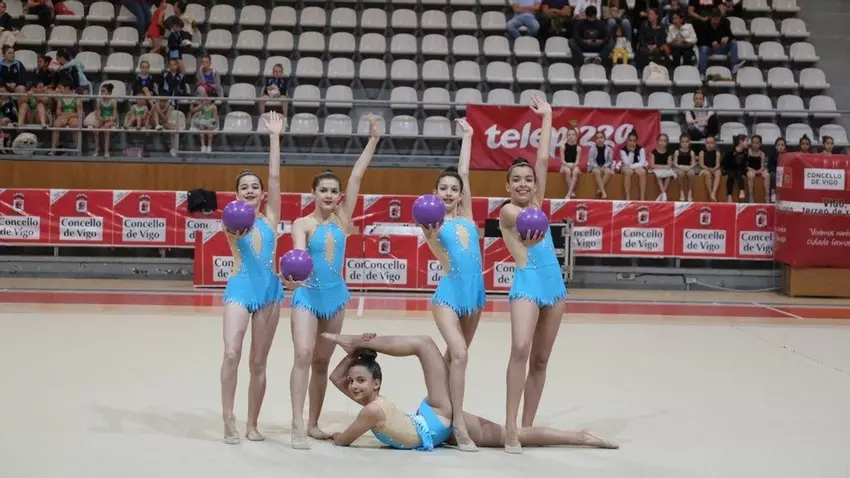 Con el Maniotas pilotando las tareas organizativas, mazas, aros, cuerdas, pelotas o cintas volaron sobre el tapiz vigués entre aplausos de un público enormemente cariñoso (y familiar) con el millar de gimnastas participantes, que desarrollaban las coreografías en tríos, cuartetos o grupos de todas las edades, acompañados por músicas variopintas, desde las muy actuales a ochenteras pasando por el 'Había una vez un circo' de Los payasos de la tele.