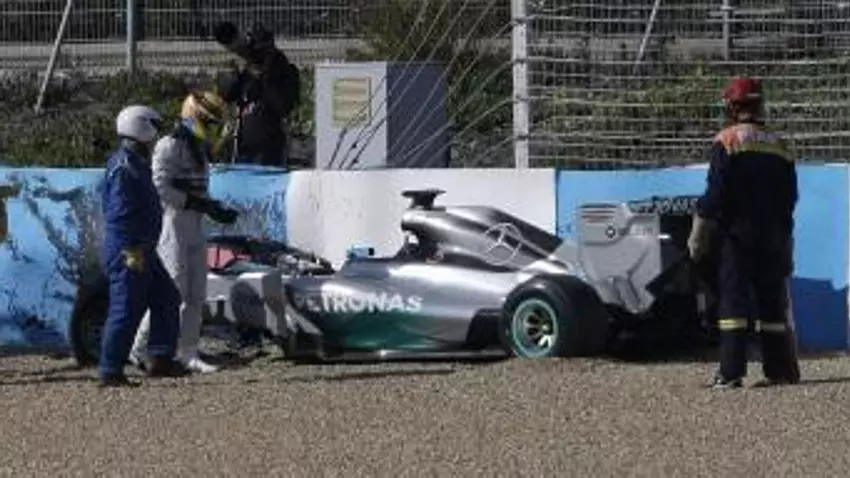 La primera jornada de entrenamientos oficiales de Fórmula 1 en el Circuito de Jerez de la Frontera (Cádiz) tuvo ayer como notas destacas el mejor tiempo efectuado por el finlandés Kimi Raikkonen (Ferrari) y el accidente del británico Lewis Hamilton, quien chocó su Mercedes al salirse de pista. En el primer día de los test, que se prolongarán hasta el próximo viernes, sólo completaron giros seis pilotos de los diez que tenían previsto salir al trazado andaluz.
