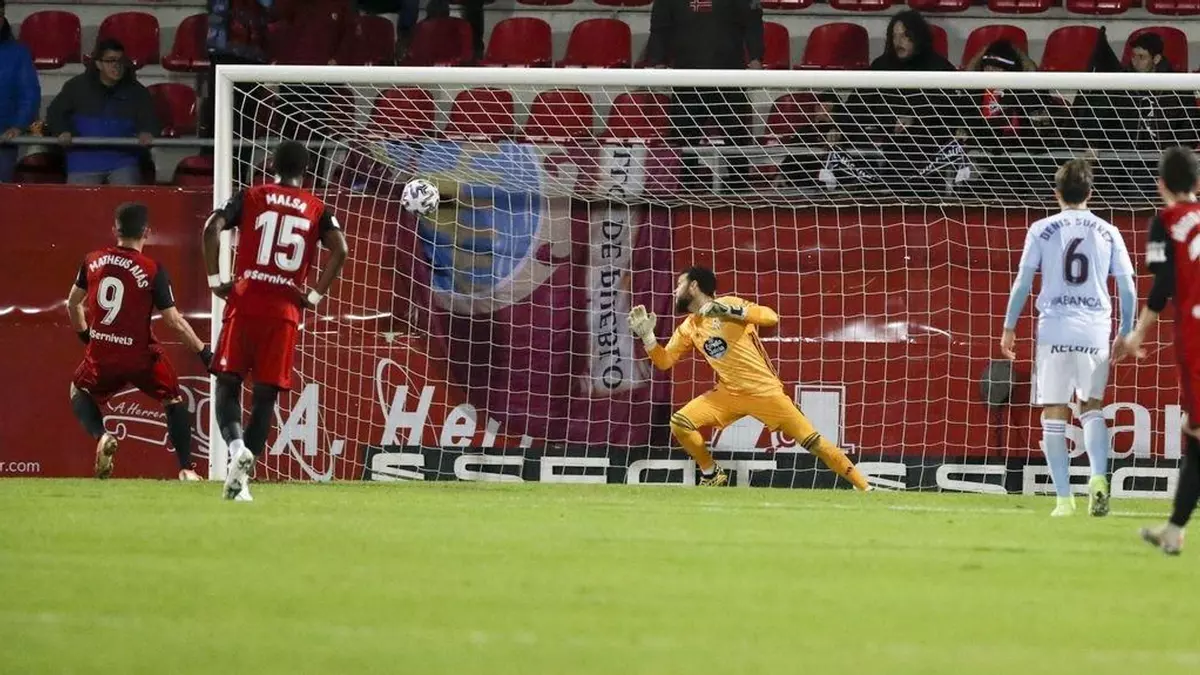 Al portero del Celta le lanzaron ayer, además, dos penas máximas. En la primera, no pudo hacer nada ante el imparable disparo de Matheus. Pero en la segunda, cuando el resultado era todavía de empate a un gol, adivinó la intención de Álvaro Peña y no sólo impidió que entrara en la portería, sino que se quedó con la pelota en las manos.