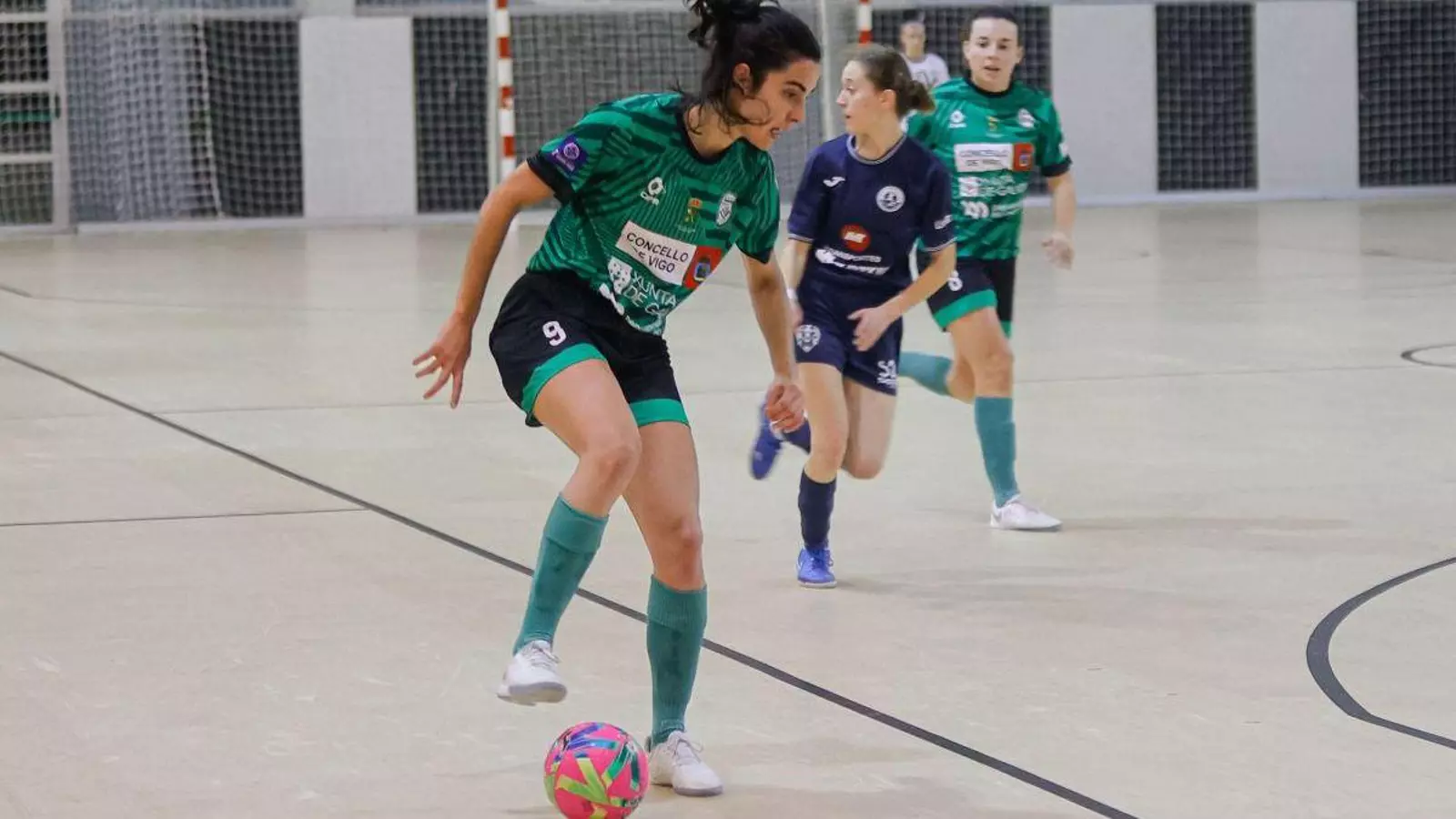 El quinteto verde respondía a cada ocasión canaria con otra, pero de menor intensidad. Hasta que a 2:30 del descanso María González se quedaba sola ante la guardameta, pero ésta rechazaba, otra vez, el chut visitante en la mejor jugada del Bembrive, con acción previa entre Jessi y “Café”.