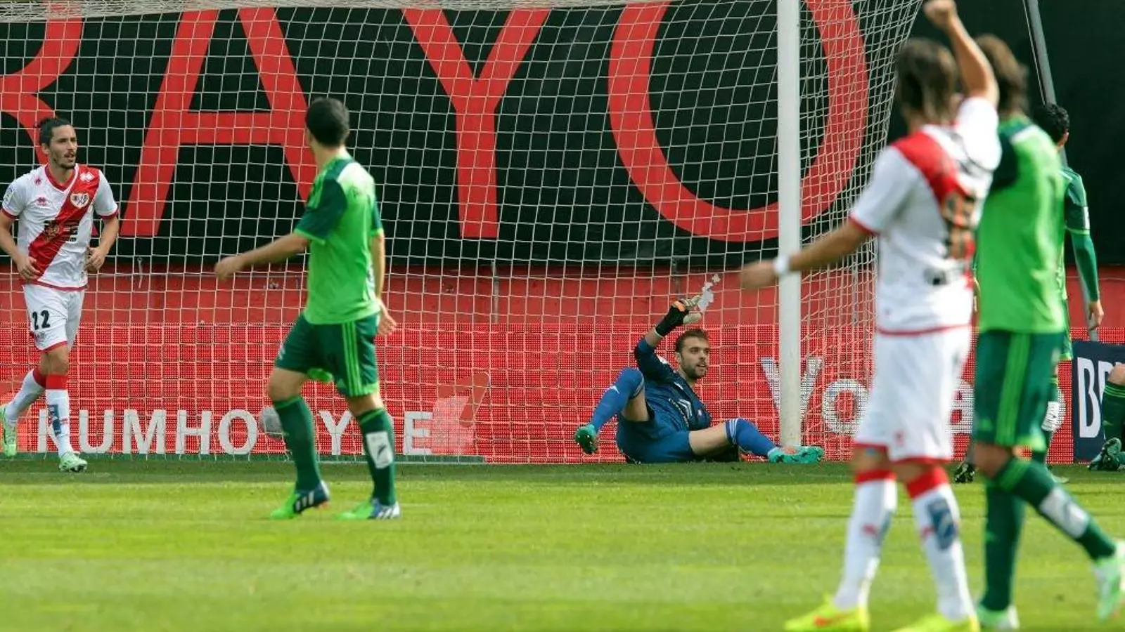 Sergio, en el suelo tras encajar el primer y único gol en el choque del mediodía de ayer en Vallecas.
