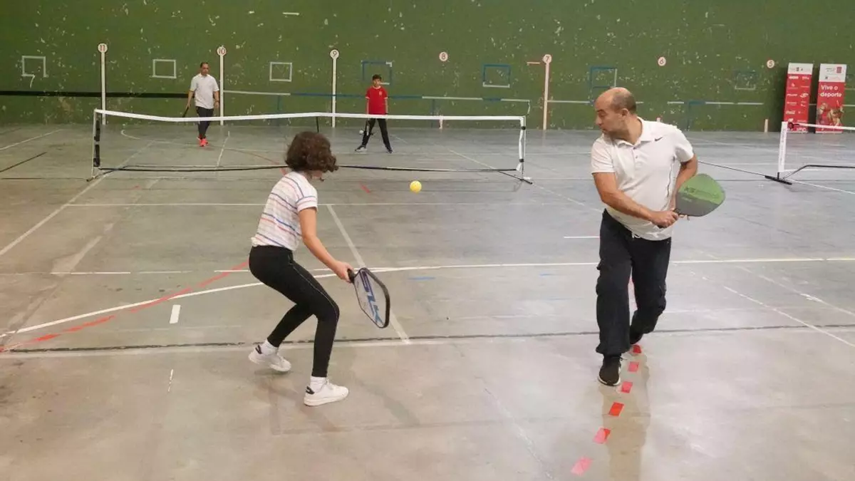 Sesión de expansión de una nueva modalidad de deporte de red, entre el tenis, el pádel y tenis playa. El pabellón Frontón de As Travesas albergó ayer una jornada de puertas abiertas de pickleball, que contó con la participación de hasta 40 jugadores, en tandas de una docena. A lo largo de una hora, los asistentes practicaron esta modalidad y con resultados satisfactorios, según explicó la presidenta de la asociación gallega de la especialidad, la viguesa María Ruiz.
