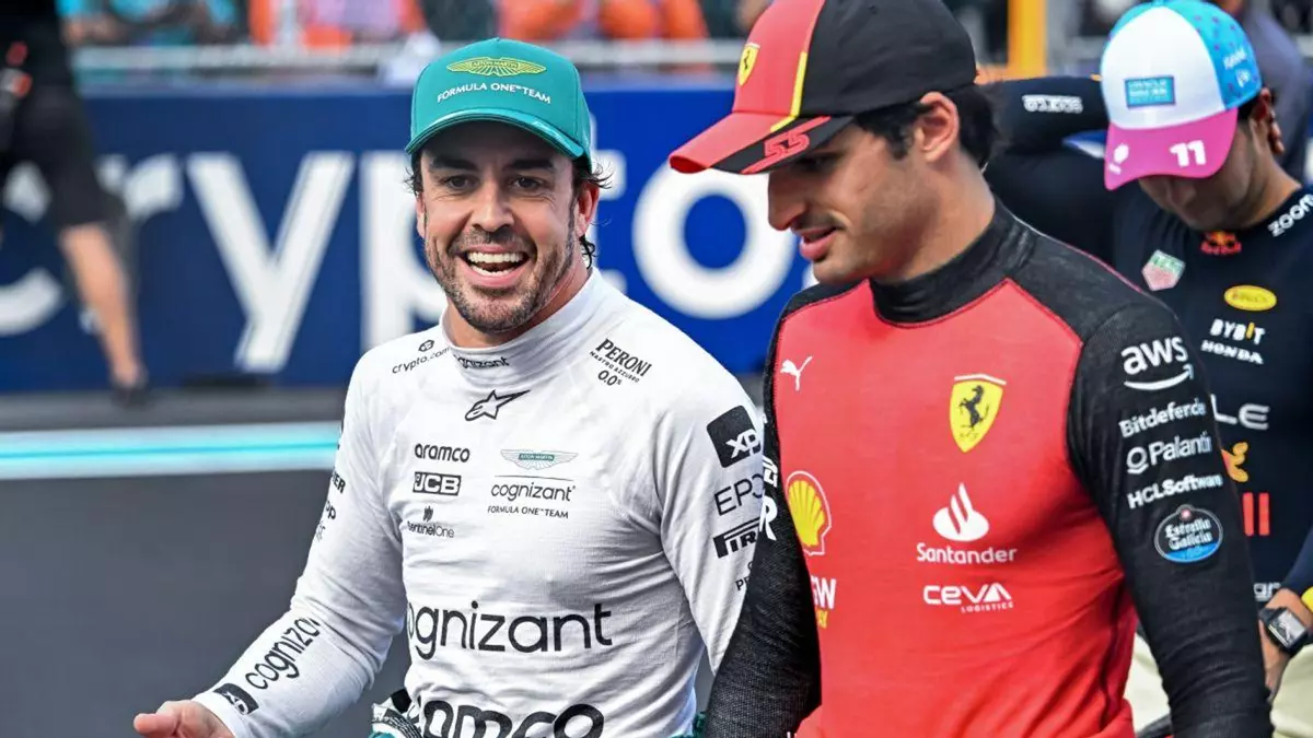 Alonso y Sainz departen ayer en el paddock de Miami.