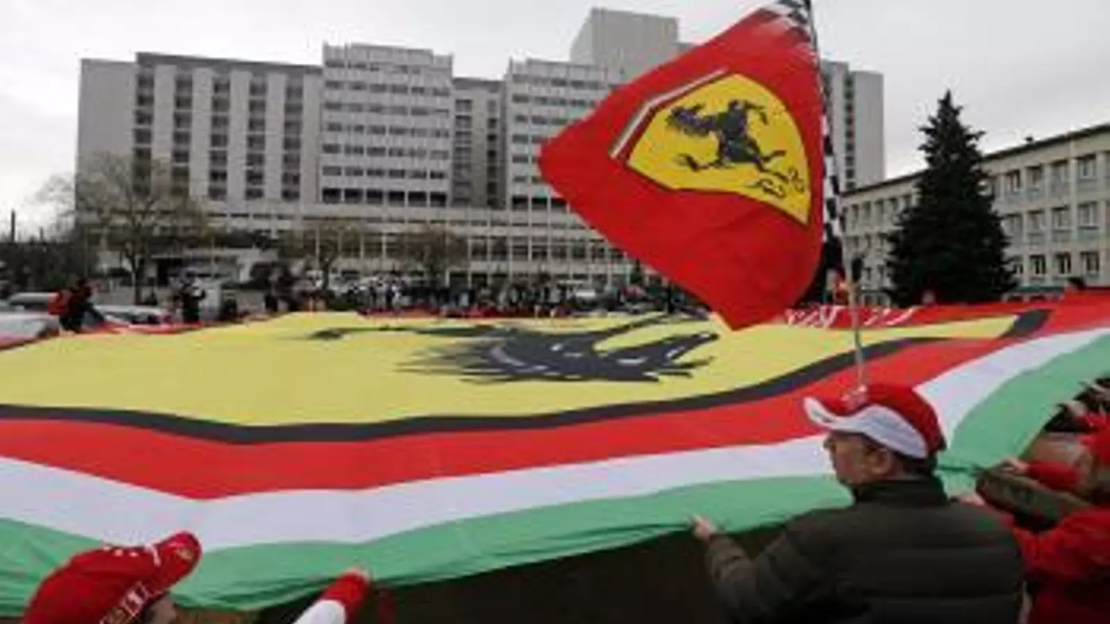 Alrededor de doscientos aficionados se acercaron hasta las proximidades del hospital, donde comenzaron a desplegar banderas rojas de Ferrari, escudería con la que 'Schumi' logró cinco de sus siente títulos mundiales, entre 2000 y 2004.