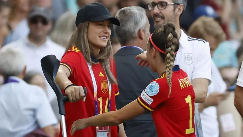 Si la primera acción de la mitad inicial había supuesto un mazazo, la última hizo las veces de redención para la españolas. Caer y levantarse en honor a la lesionada Alexia Putellas, a quien le dedicaron esa segunda diana y que veía el partido en la grada con una camiseta en honor a Virginia Torrecilla, otra de las grandes ausentes en la cita.