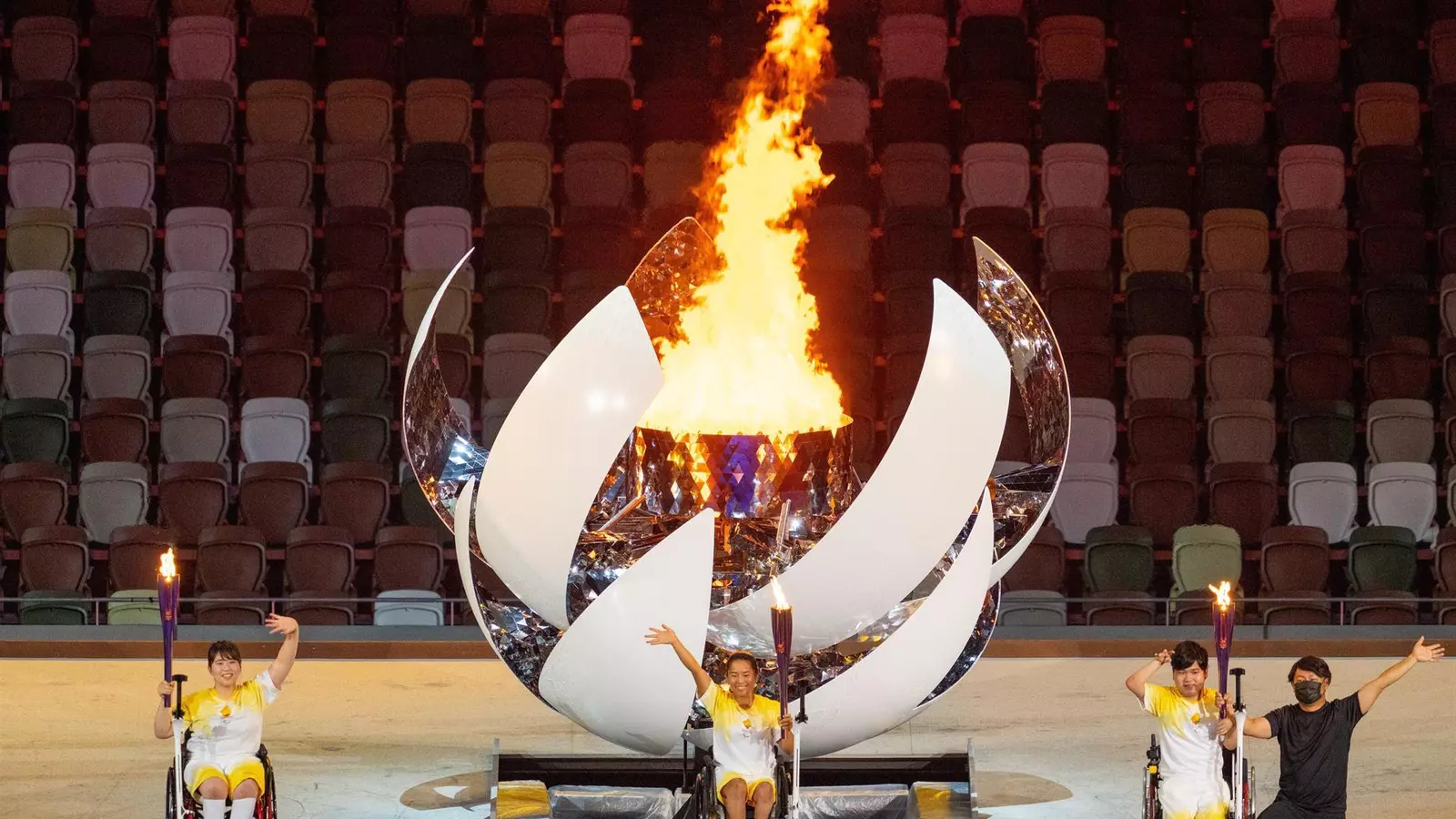 La llama tricolor y los fuegos artificiales iluminaron el cielo japonés durante la ceremonia de apertura de los Juegos Paralímpicos. La gala ha homenajeado a los deportistas afganos que no han podido acudir al evento debido a la situación política del país. Los atletas refugiados fueron los encargados de abrir un desfile en el que participaron 162 países. Fotos: EFE
