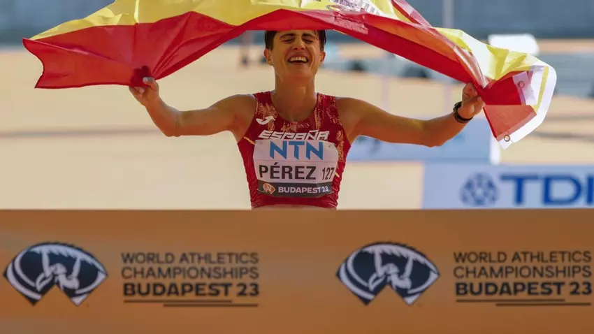 La atleta española María Pérez se proclamó ayer campeona del mundo de 20 kilómetros marcha del Campeonato del Mundo de atletismo en categoría absoluta, que se está disputando en Budapest (Hungría), un oro que se suma al logrado el sábado, en la misma prueba pero en categoría masculina, por Álvaro Martín. La granadina, campeona de Europa en 2018, cruzó la línea de meta con un tiempo de 1:26:51, su tercera marca de siempre, por delante de la australiana Jemima Montag (1:27:16) y de la italiana Antonella Palmisano (1:27:26), plata y bronce respectivamente.