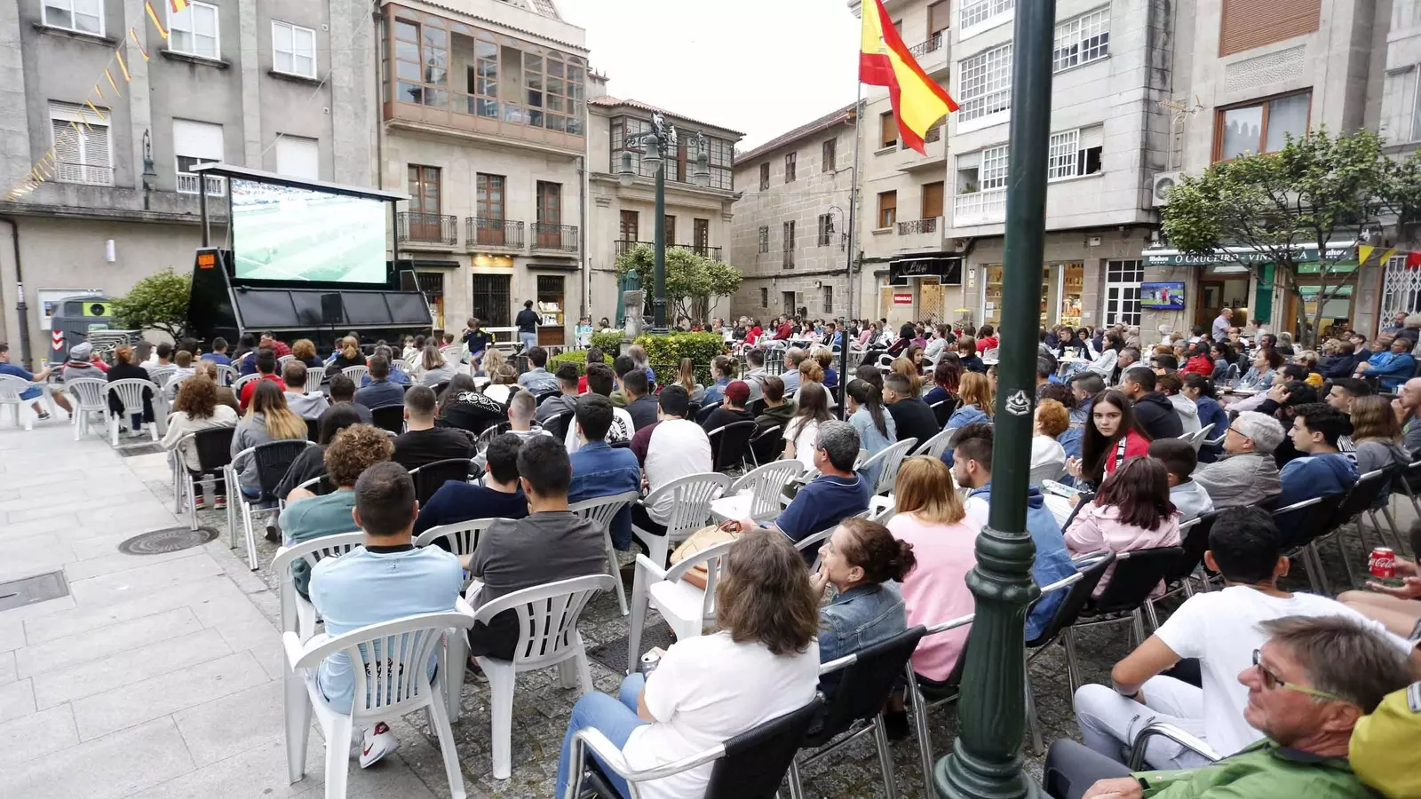 La afición vivió en las terrazas un partido sufriente que tuvo un final muy feliz con el moañés