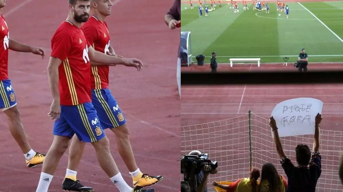 "Piqué cabrón fuera de la selección" y "fuera, fuera", fueron los gritos que acompañaron desde la grada el momento en el que Piqué saltó al césped junto al resto de internacionales. Los insultos de la grada se encadenaron así como los cánticos. "No nos engañan, Cataluña es España", "Viva España" y "Viva la Guardia Civil", se repetían en un ambiente que sólo cambiaba para ovacionar a Sergio Ramos o corear el nombre de Isco Alarcón.