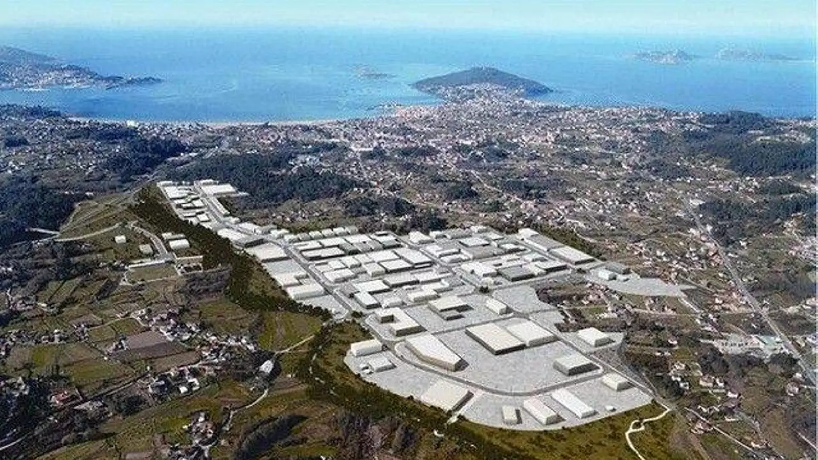 Vista aérea del Parque Empresarial de Porto do Molle en Nigrán.