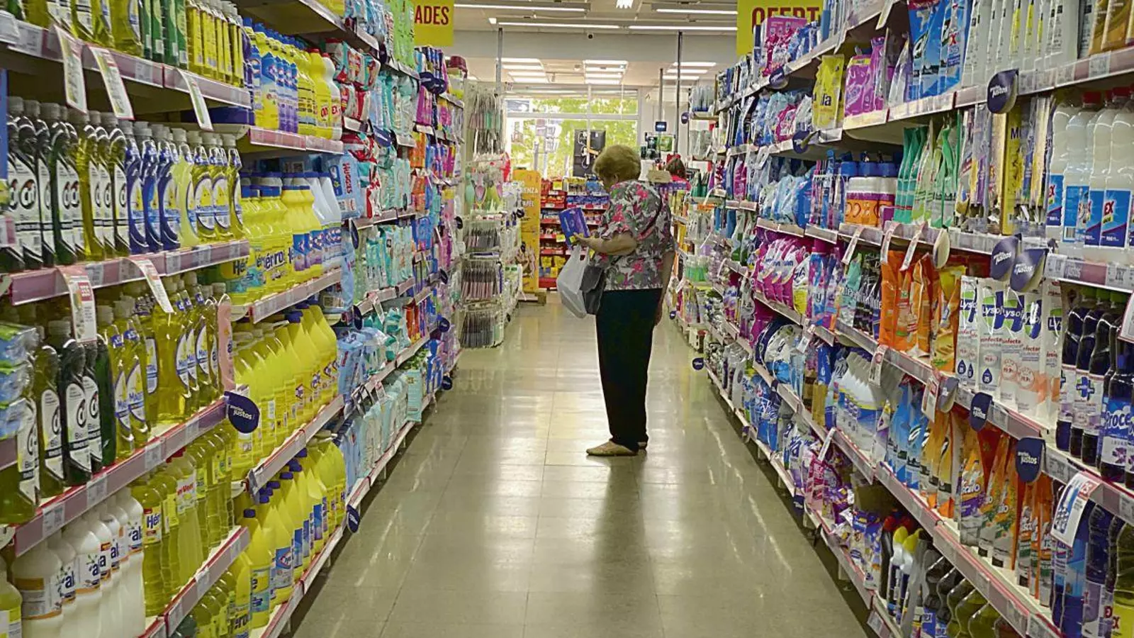 Una mujer busca un producto en un supermercado.