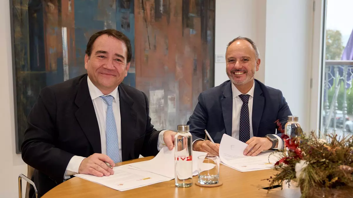 El delegado del Estado, David Regades, y el presidente del Instituto de Crédito Oficial, Manuel Illueca, firmaron ayer el convenio de colaboración