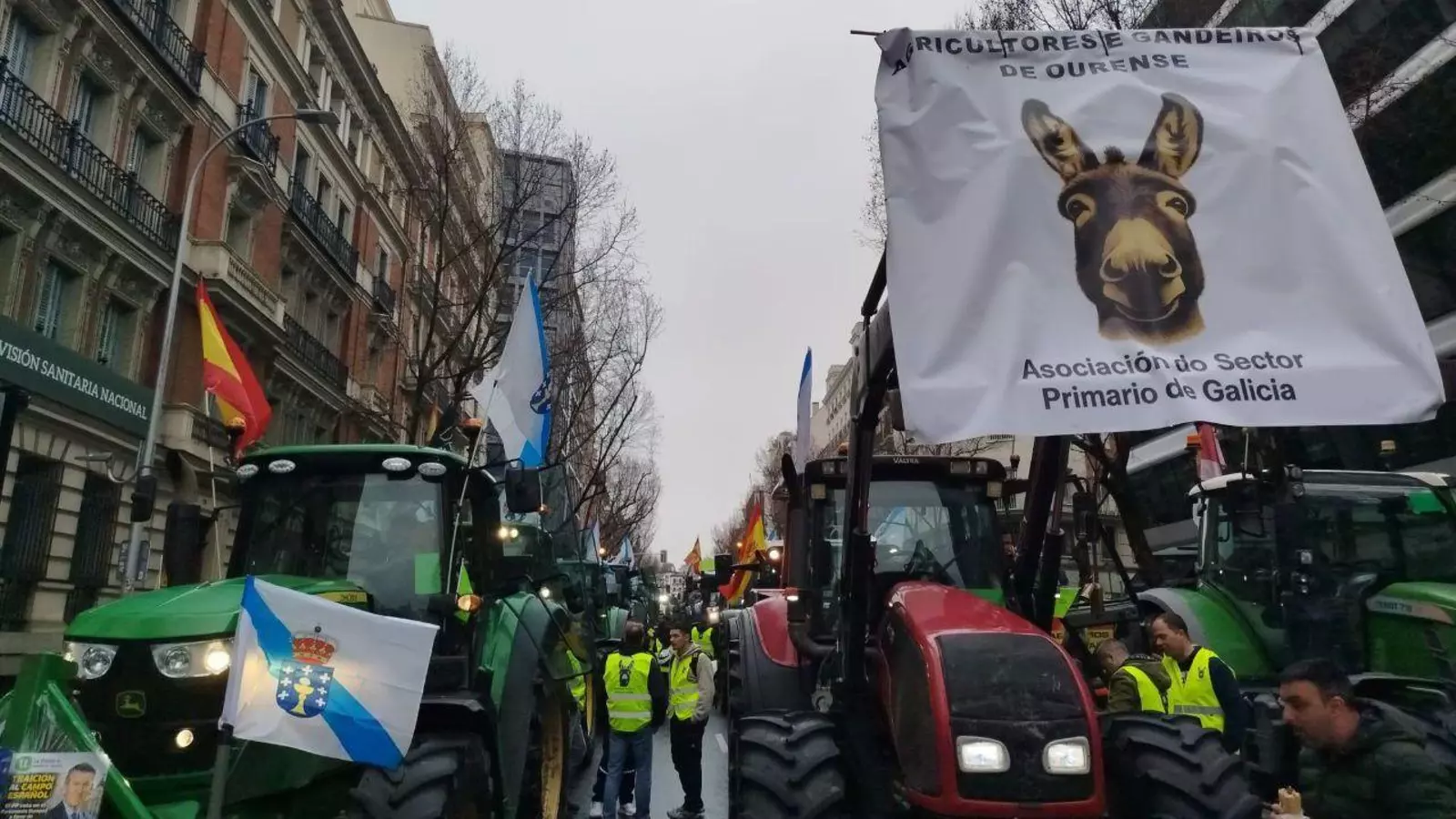 Desde primera hora de la mañana, unos 500 tractores —la cifra permitida por la Delegación de Gobierno frente a los 1.500 previstos por los organizadores— han tomado la Plaza de Colón, procedentes de cinco columnas que partieron de Torrejón de la Calzada, Robregordo, Arganda del Rey, Guadalajara y El Espinar (Segovia). Los vehículos agrícolas han recorrido el Paseo de Recoletos y el Paseo del Prado hasta situarse frente al Ministerio de Agricultura, Pesca y Alimentación, donde no se les permitió el acceso.