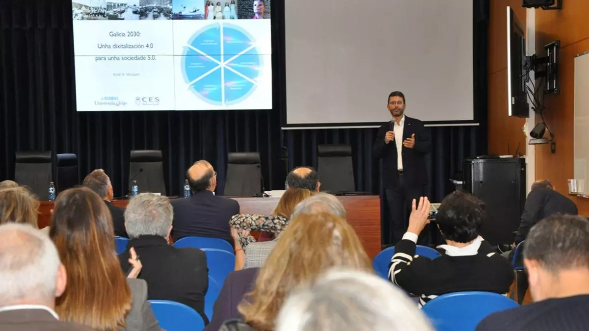“La digitalización no es el futuro, ya está aquí y requiere iniciativa y capacidad de adaptación”. De aquí a 2030 su impacto en la productividad, en el empleo o en la desigualdad dependerá de las políticas públicas que se diseñen en las distintas administraciones, pero “desde luego” con un protagonismo especial del Gobierno autonómico. Así de rotundo se mostró ayer el catedrático de la UVigo Xosé H. Vázquez Vicente en la presentación del informe ‘Galicia 2030: unha dixitalización 4.0 para unha sociedade 5.0’, un documento elaborado por un amplio equipo de investigadores de la UVigo liderados por Vázquez a petición del Consello Económico e Social de Galicia.