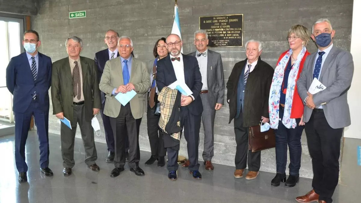 Relata el catedrático de derecho penitenciario y escritor Gonzalo Rodríguez Mourullo en una laudatio dedicada a su íntimo amigo Xosé Luís Franco Grande, que el jurista y escritor solía cerrar sus dedicatorias escritas con la expresión latina ‘et nunc et semper’, ahora y siempre. Desde ayer, y para siempre jamás, la memoria de Franco Grande estará presente en la Facultad de Ciencias Jurídicas y del Trabajo de la UVigo, donde hoy fue homenajeado por compañeros de profesión, familiares y autoridades académicas y políticas. El rector de la UVigo, Manuel Reigosa; el secretario general de Política Lingüística de la Xunta de Galicia, Valentín García; el decano y el vicedecano y coordinador de Normalización Lingüística de la Facultad de CC Jurídicas y del Trabajo, Francisco Torres y Xosé Manuel Pacho, respectivamente; el presidente de la Hermandad Jurídica Gallega, Xaquín Monteagudo y la hija de Franco Grande, Rosalía Franco, participaron en el homenaje, que tuvo su origen en la decisión darle el nombre del escritor y abogado al premio jurídico de investigaciones en lengua gallega que promueve el centro.