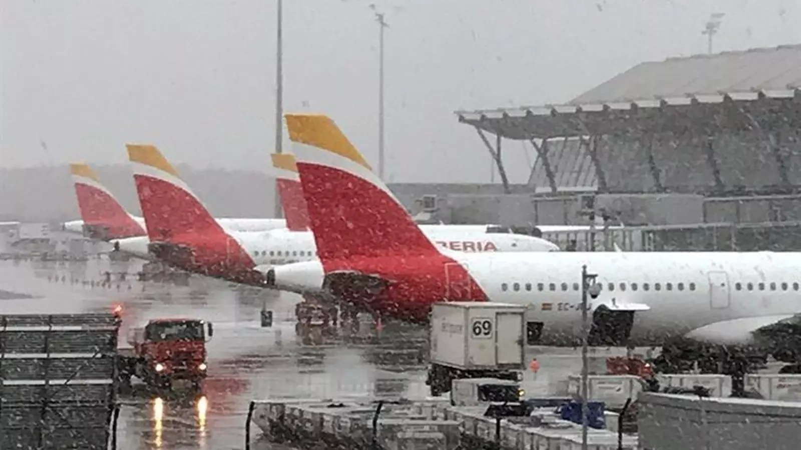 Ante la llegada del temporal, que está dejando una copiosa nevada en Madrid, Aena ha activado el Plan Invierno que incluye trabajos de prevención en pistas, para evitar que se hielen y que se acumule la nieve.