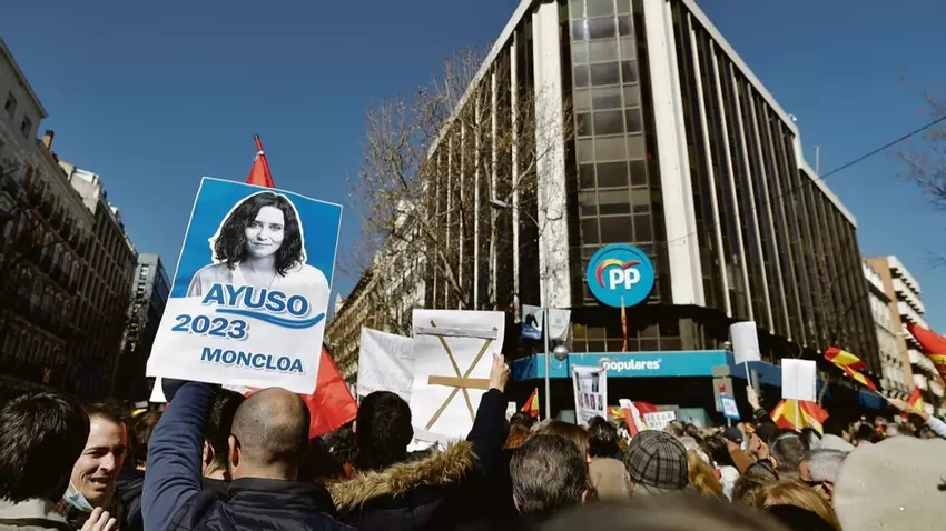 Miles de afiliados y simpatizantes del PP se concentraron en la mañana de ayer ante la sede del partido en Madrid para respaldar a la presidenta madrileña, Isabel Diaz Ayuso, y protestar contra la cúpula de esa formación, que convocó para hoy a su Comité de Dirección a causa de la crisis interna. Mientras, los principales dirigentes del partido, tanto el nacional como los autonómicos, guardaron silencio sobre el choque entre el líder del PP, Pablo Casado, y el secretario general, Teodoro García Egea, con Díaz Ayuso.