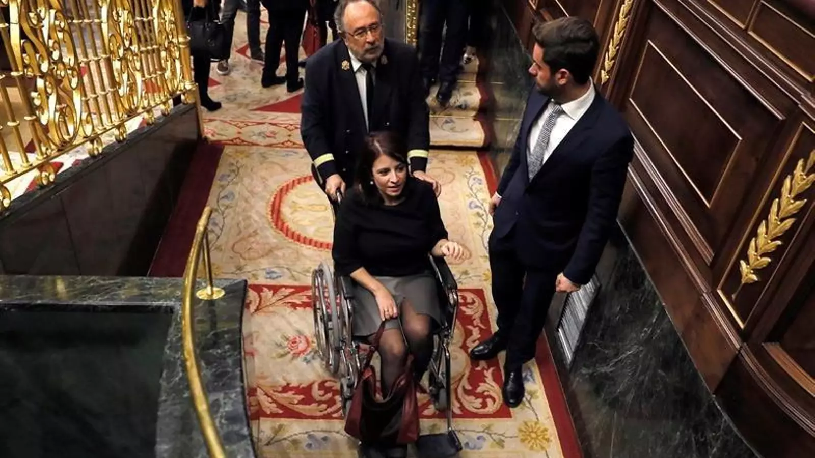 Cada detalle tiene su lectura política. Pero... ¿y el esguince de Adriana Lastra? La portavoz socialista, a bordo de sus tacones de aguja, bajaba las escaleras para votar por primera vez cuando se ha escuchado un gemido en la sala. Presto, Pedro Sánchez, a su altura, acudía a sostenerla. También Carmen Calvo y Ana Pastor. Torcedura de tobillo servida, pero Lastra volvía al hemiciclo pasados unos minutos bolsa de hielo en mano para seguir votando, gracias a los "tours" que se daba Zamarrón al finalizar cada votación.