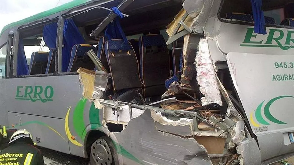 El accidente se ha producido a las 14.20 horas cuando un camión articulado de la marca Iveco ha chocado por alcance "trasero lateral" contra el microbús por causas que aún se desconocen, han confirmado fuentes de los bomberos de Vitoria, que han tenido que rescatar del microbús a dos personas con heridas graves, una de ellas con una fractura importante en una pierna y con heridas en la cabeza.