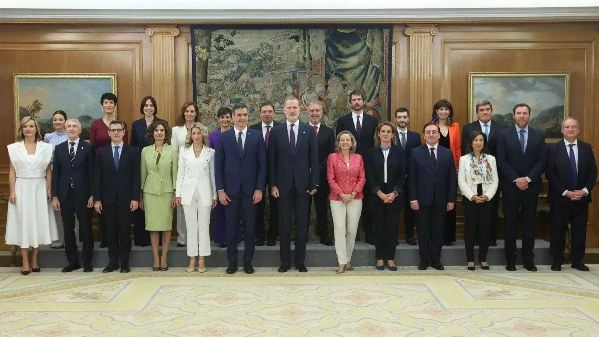 Una vez completado el proceso, los 22 ministros han saludado a Felipe VI y han posado junto a él y al presidente del Gobierno para una foto, la primera del nuevo Ejecutivo.